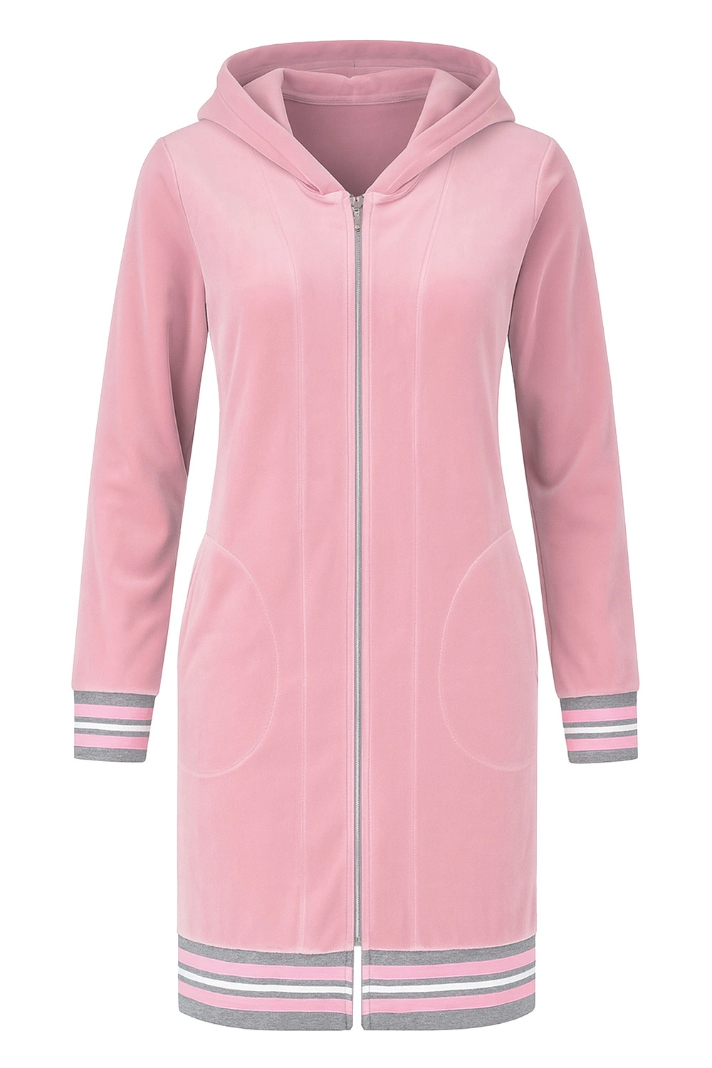 Długość szlafroka mierzona na płasko to ok. 93 cm, długość rękawa ok. 60 cm, wymiary mogą się od siebie różnić w zależności od rozmiaru.