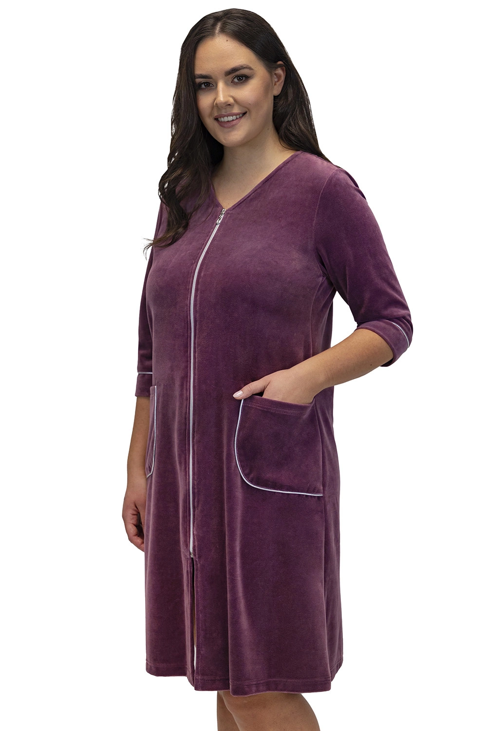 Długość szlafroka mierzona na płasko dla rozmiaru L to ok. 100 cm, długość rękawa ok. 42 cm, wymiary mogą się od siebie różnić w zależności od rozmiaru.