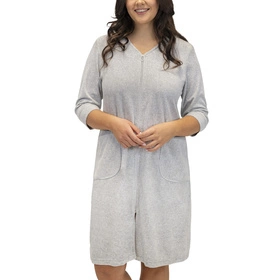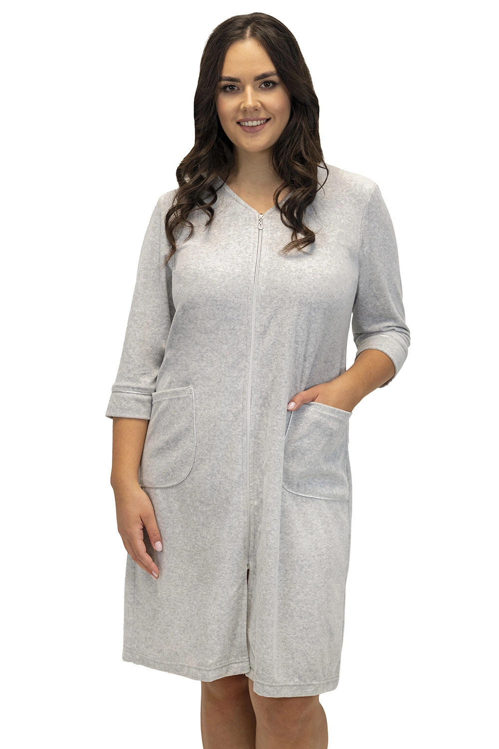 Długość szlafroka mierzona na płasko dla rozmiaru L to ok. 100 cm, długość rękawa ok. 42 cm, wymiary mogą się od siebie różnić w zależności od rozmiaru.