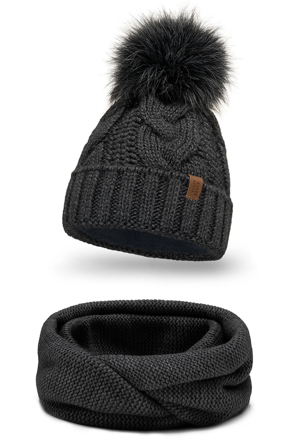 - zestaw wykonany jest z ciepłej przędzy o modnym splocie