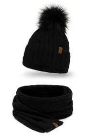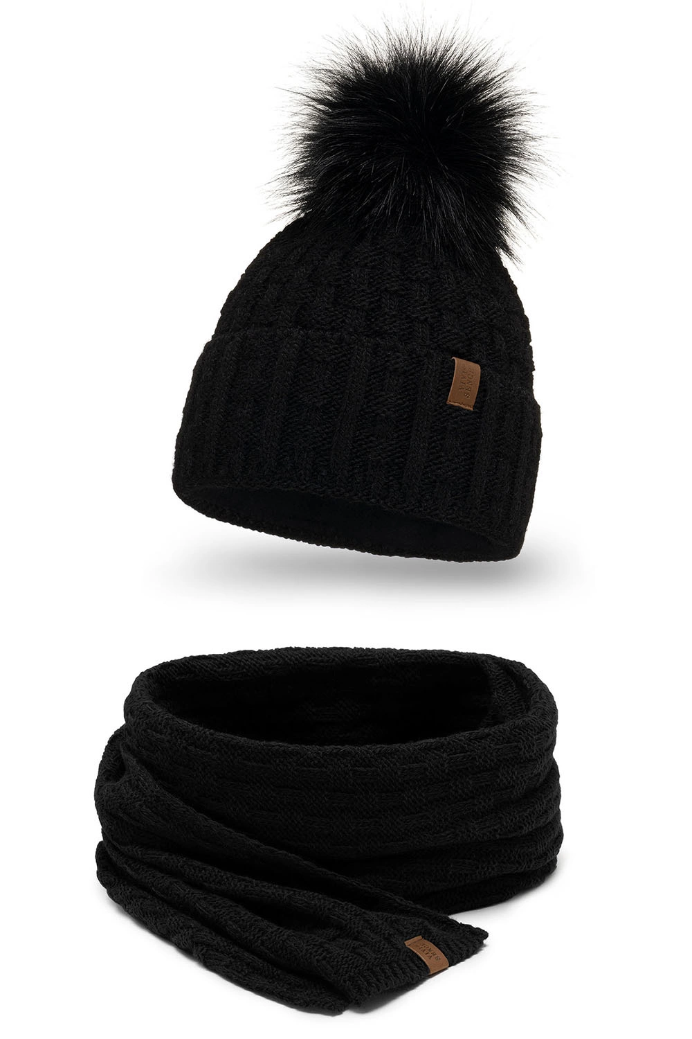 - komplet wykonany jest z ciepłej przędzy o modnym splocie,