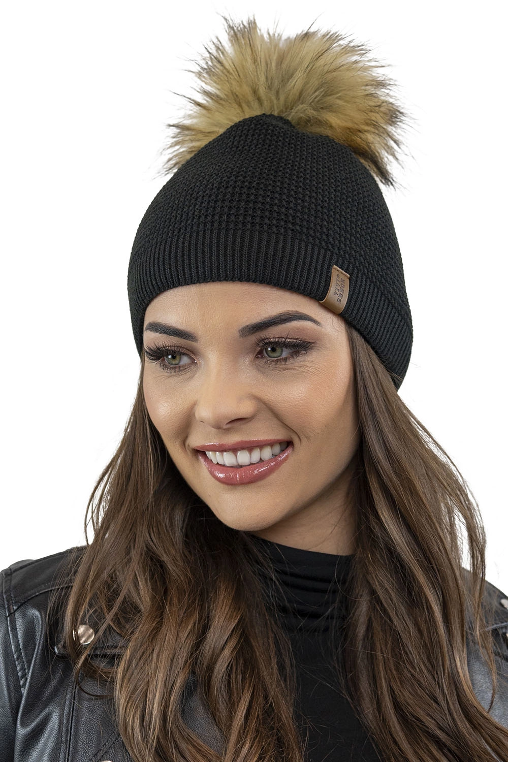 • wykończona pomponem ze sztucznego futerka