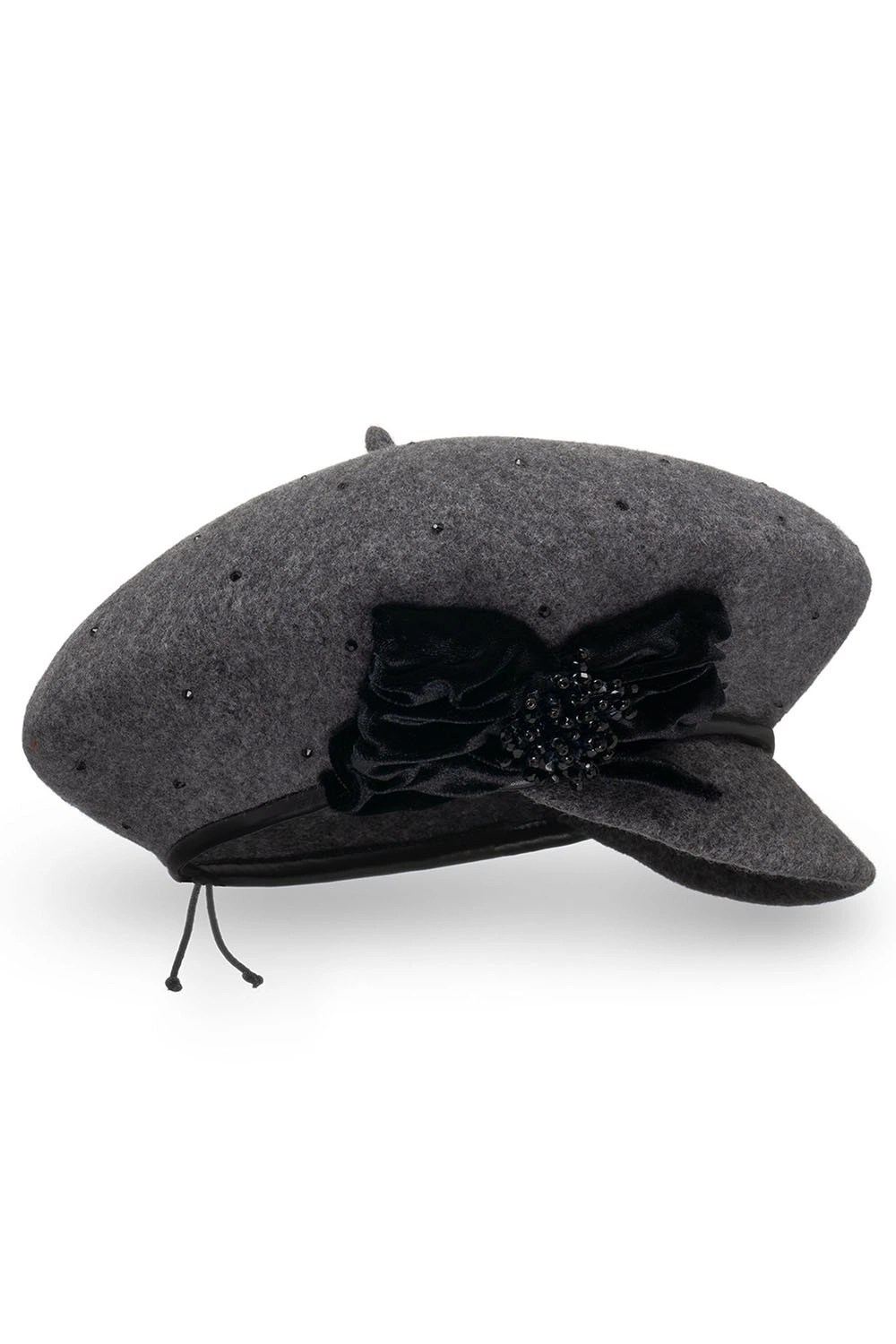 Przy jego produkcji została wykorzystana wysokiej jakości żywa wełna Woolmark®. Przędza potwierdzona jest certyfikatem Oeko-Tex standard. Kaszkiet zdobi welurowa kokarda z koralikami. Góra w całości pokryty strasami w kolorze czarnym. Regulowany obwód, ukrytymi w lamówce troczkami. Zaletą kaszkietu są ręcznie wyszywane zdobienia, dzięki czemu każdy egzemplarz jest niepowtarzalny.