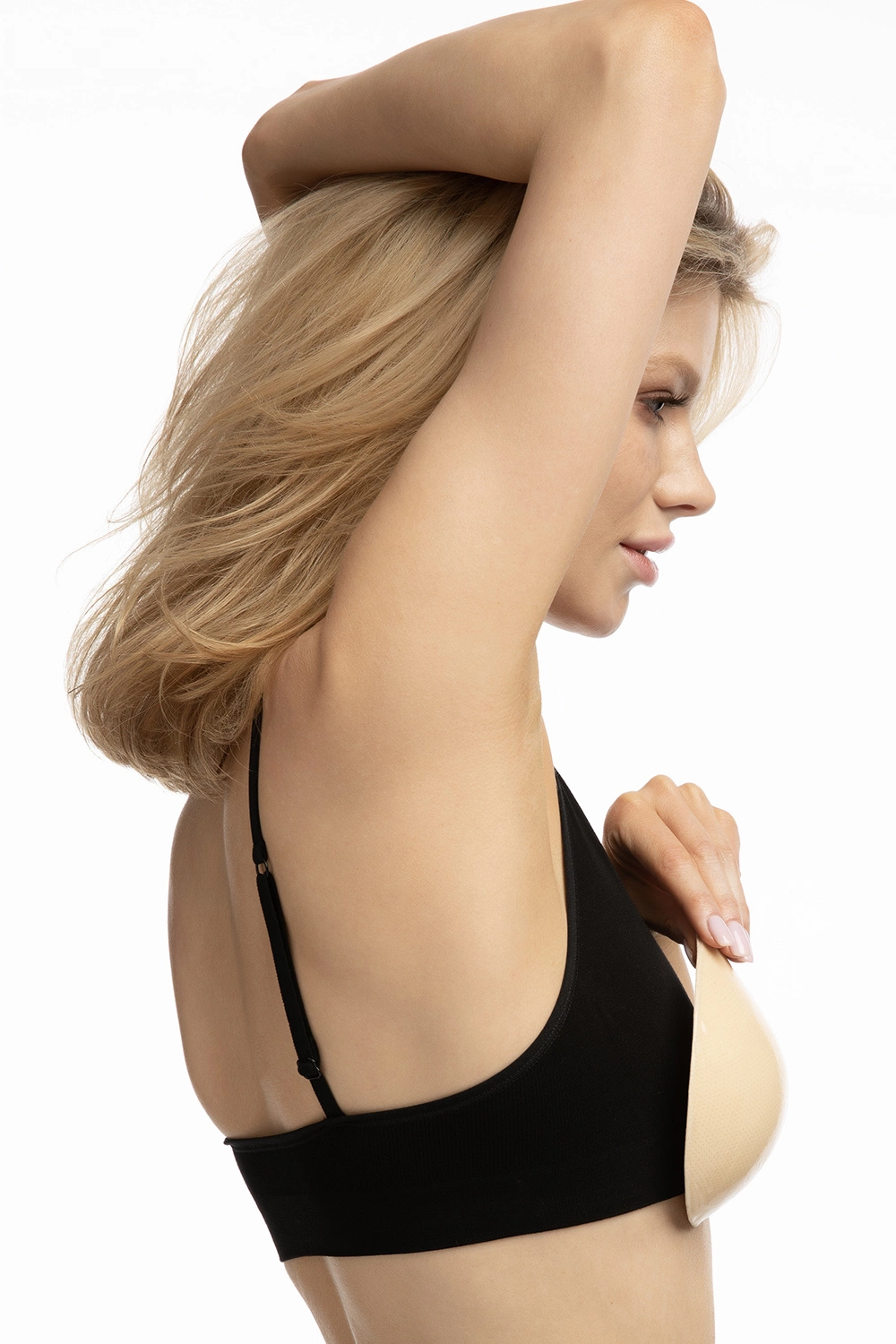 - innowacyjna konstrukcja wkładek do biustonosza obejmuje klej umieszczony po zewnętrznej stronie, co pozwala na łatwe i pewne przyklejenie ich do biustonosza, sukienki czy topu