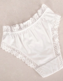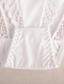 - góra i nogawki obszyte są są koronką przechodzącą w tył majtek