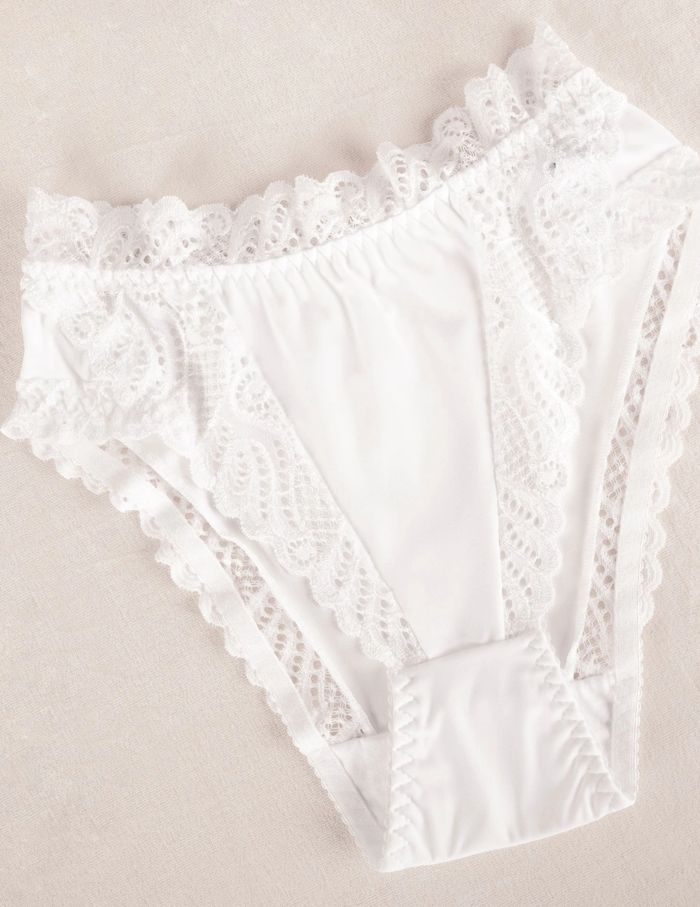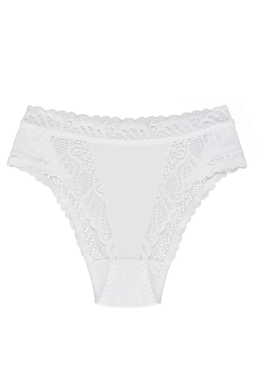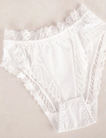 - góra i nogawki obszyte są są koronką przechodzącą w tył majtek