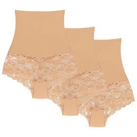 • Wol-Bar Preciosa 3-pak Majtki wysokie figi, beżowy