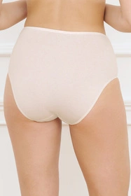 Figi wykonane z dzianiny elastycznej z ozdobną wstawką z przodu. Klasyczny fason w połączeniu z dużym dodatkiem elastanu koryguje zbyt krągłe biodra i wyszczupla brzuch. Klasyczne, wygodne, a zarazem eleganckie. Skład: 90% bawełna,10% elastan.