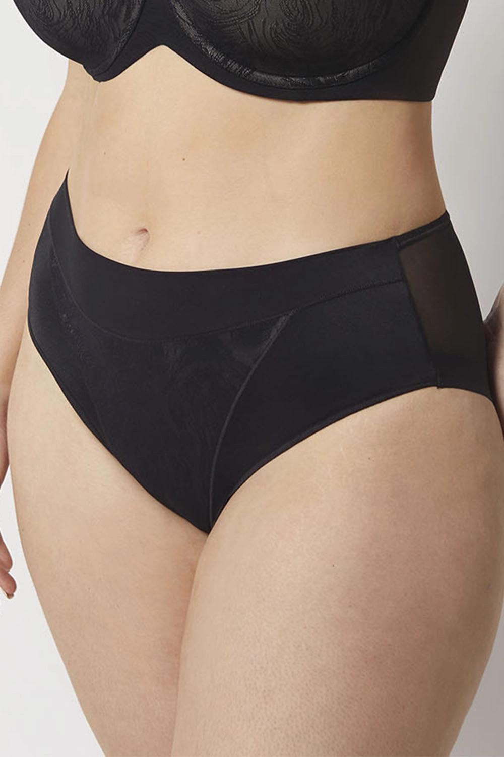 • przód wykonany jest z gładkiej dzianiny oraz wzorzystej siateczki