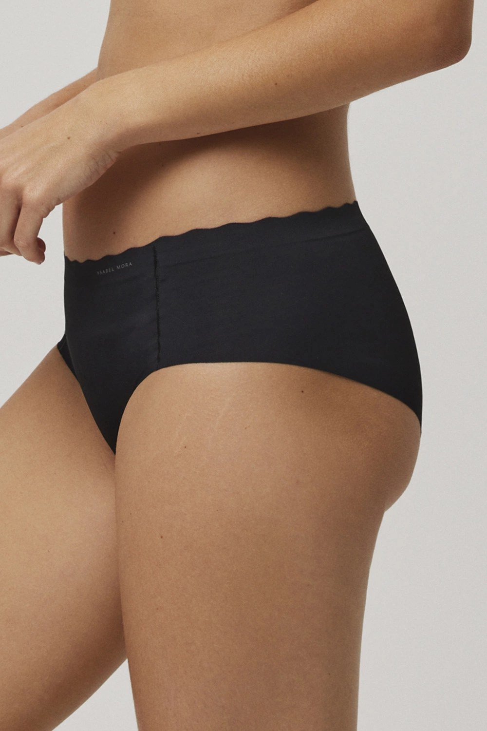 Wysokie figi Ysabel Mora 19340 to bezszwowa bielizna zaprojektowana dla komfortu i dyskrecji pod ubraniem. Gładka, elastyczna tkanina dopasowuje się do sylwetki i pomaga uzyskać równą linię pod dopasowanymi fasonami. Wysoki stan zapewnia osłonę w okolicach talii i brzucha, zwiększając poczucie pewności na co dzień. Płaskie wykończenia ograniczają ryzyko odznaczania się pod odzieżą, a miękka w dotyku powierzchnia sprzyja wygodzie noszenia przez cały dzień. Konstrukcja bezszwowa pracuje z ciałem i nie krępuje ruchów. Tył z pełnym kryciem daje stabilność i swobodę podczas codziennych aktywności. Brak zbędnych zdobień sprawia, że model jest uniwersalny i łatwo łączy się z garderobą. To praktyczny wybór na co dzień, zwłaszcza pod gładkie, przylegające ubrania, gdy liczy się niewidoczny efekt i lekkość noszenia. Prosty, funkcjonalny fason sprawdzi się w pracy, w ruchu i w domowym komforcie.